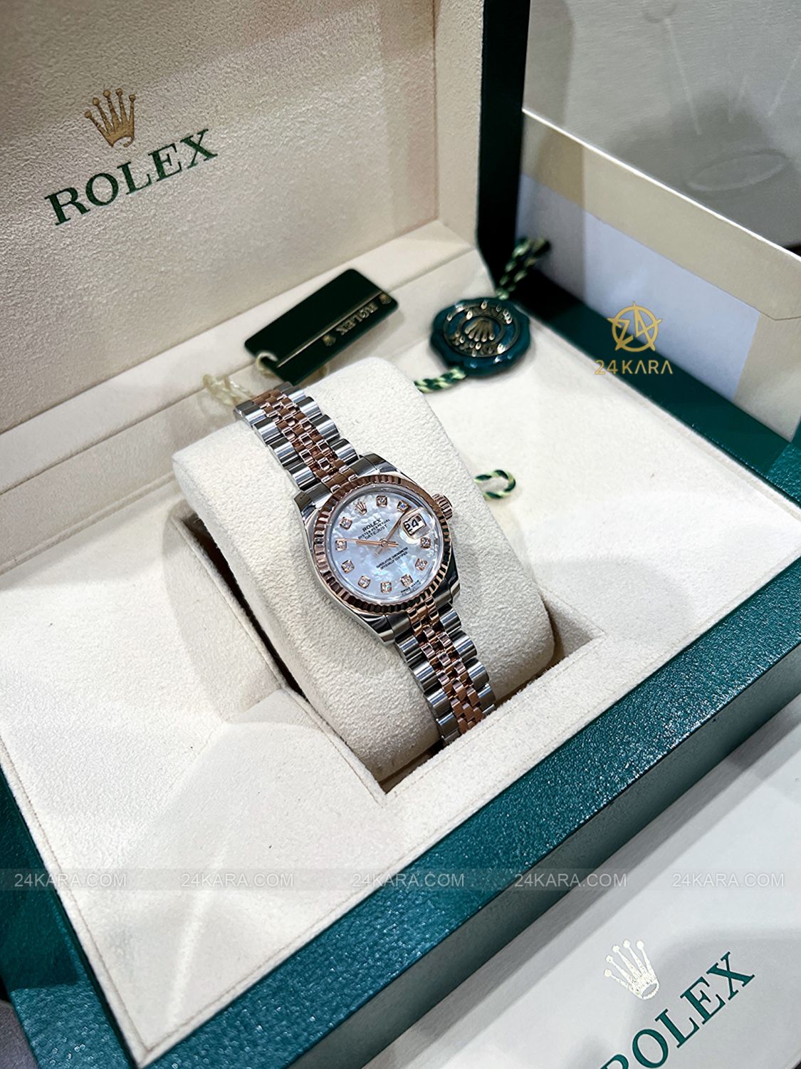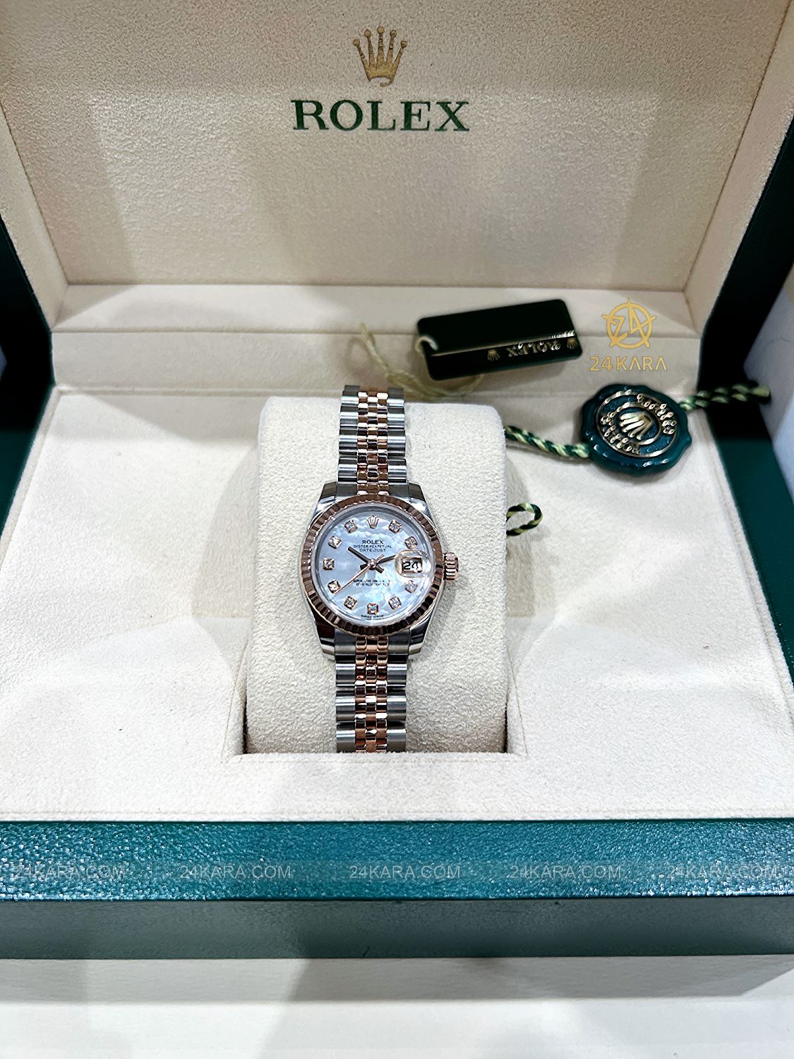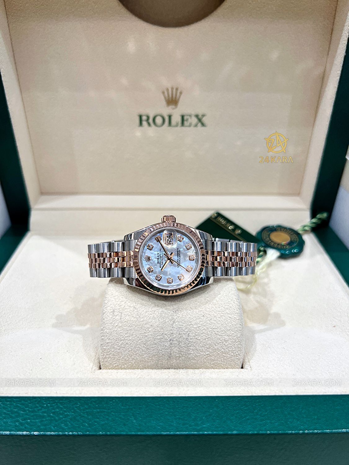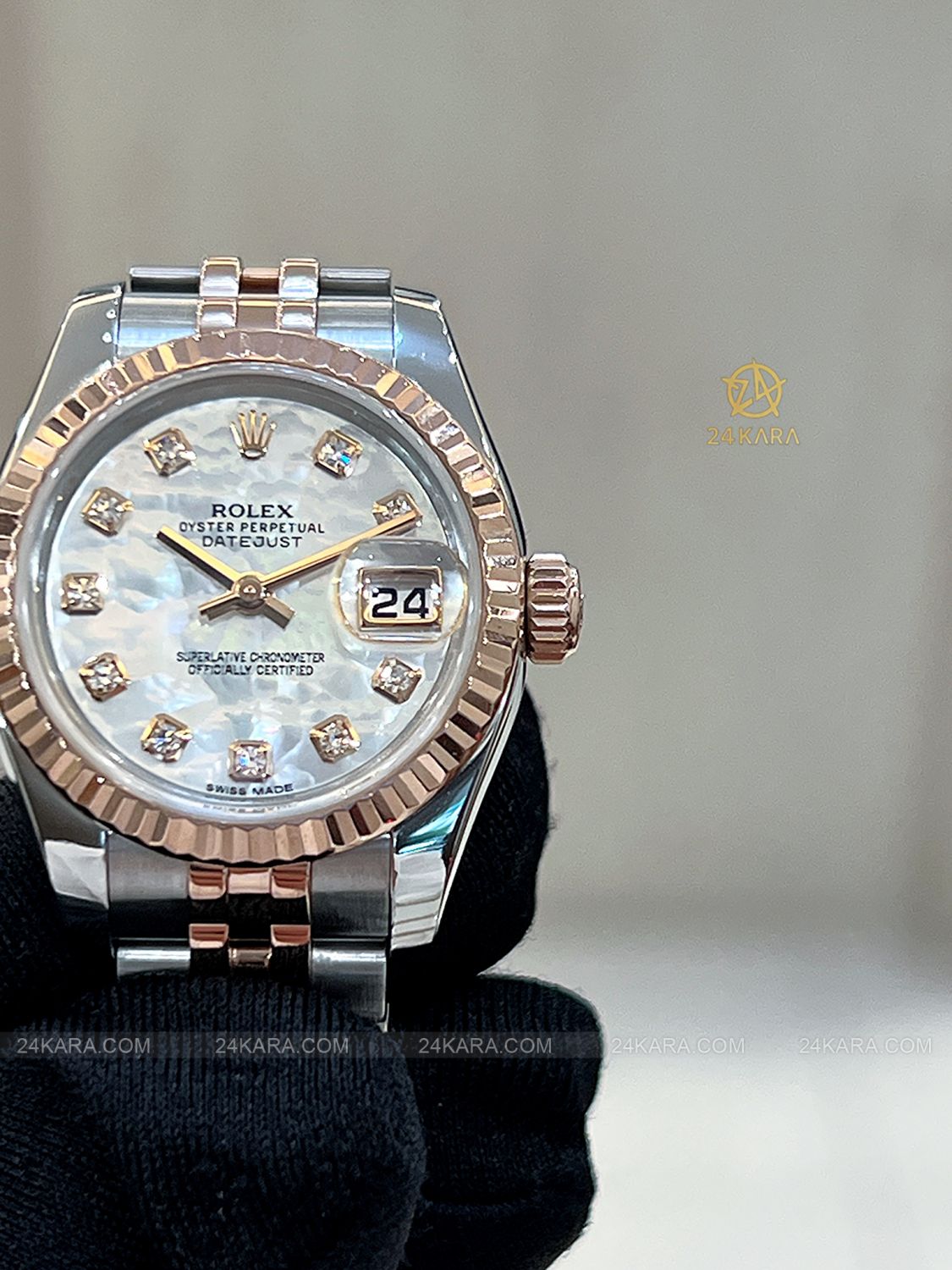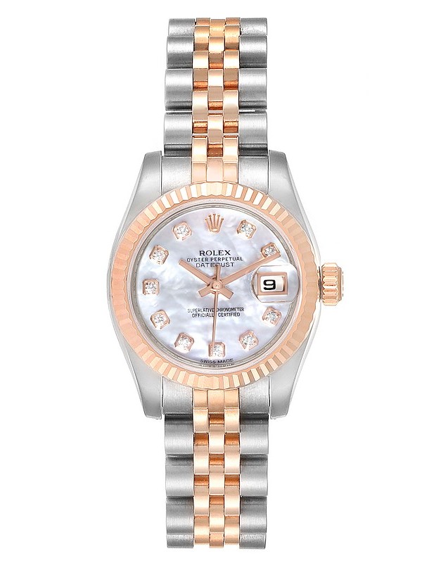 Đồng hồ Rolex Datejust 26 179171 Demi vàng hồng mặt khảm trai MOP cọc kim cương - Lướt