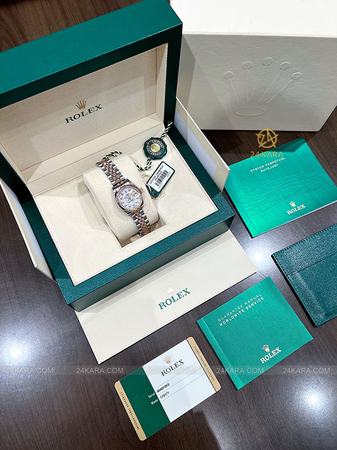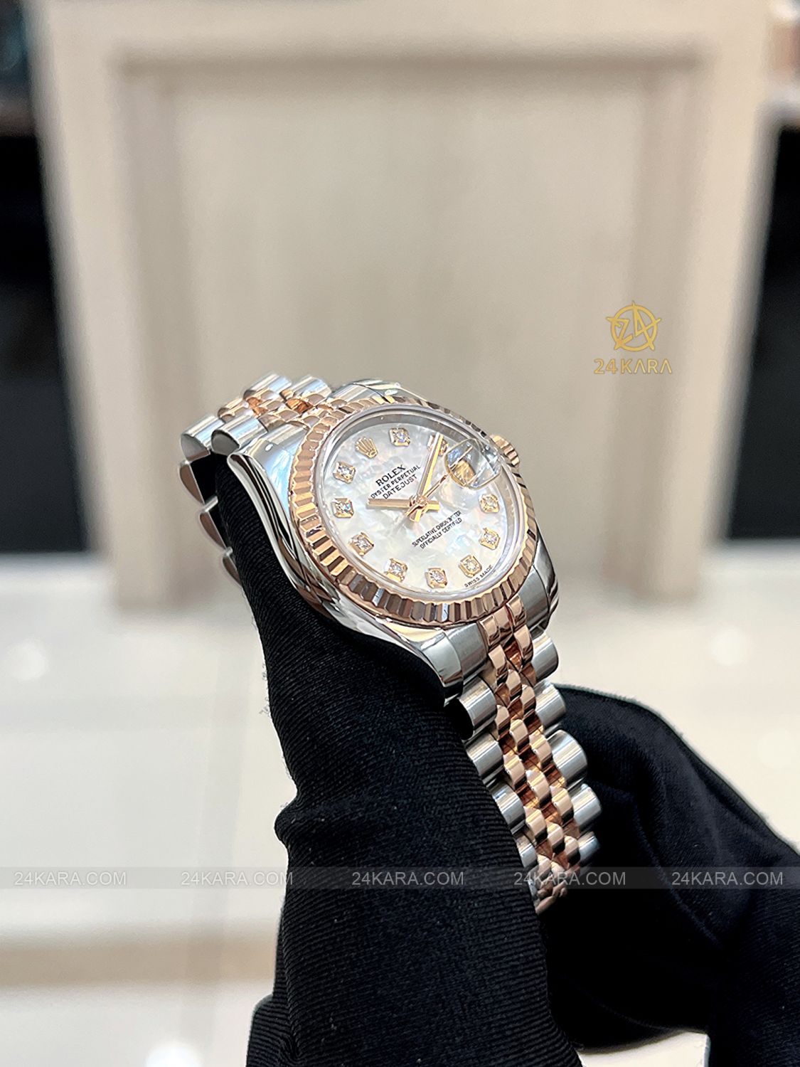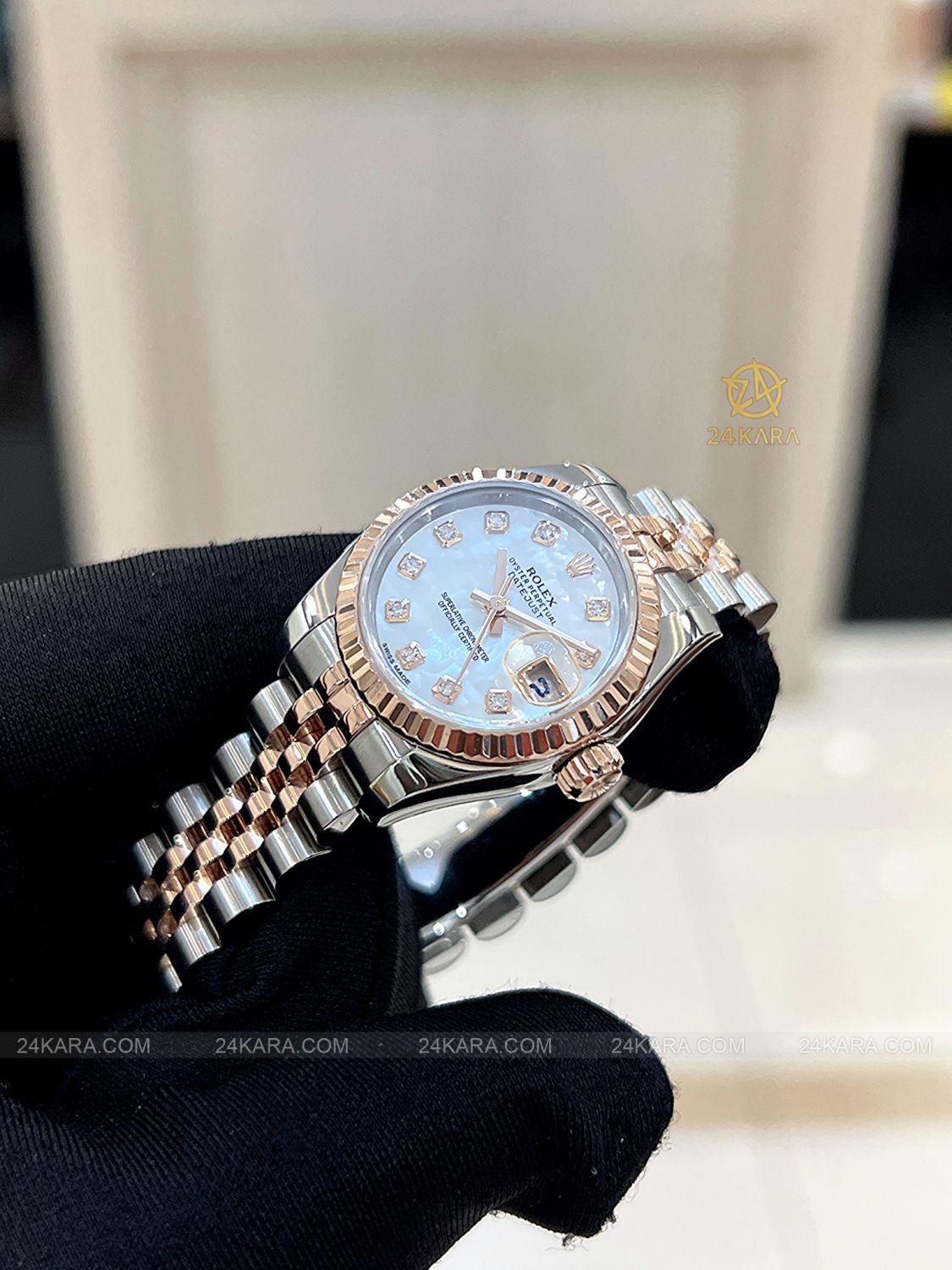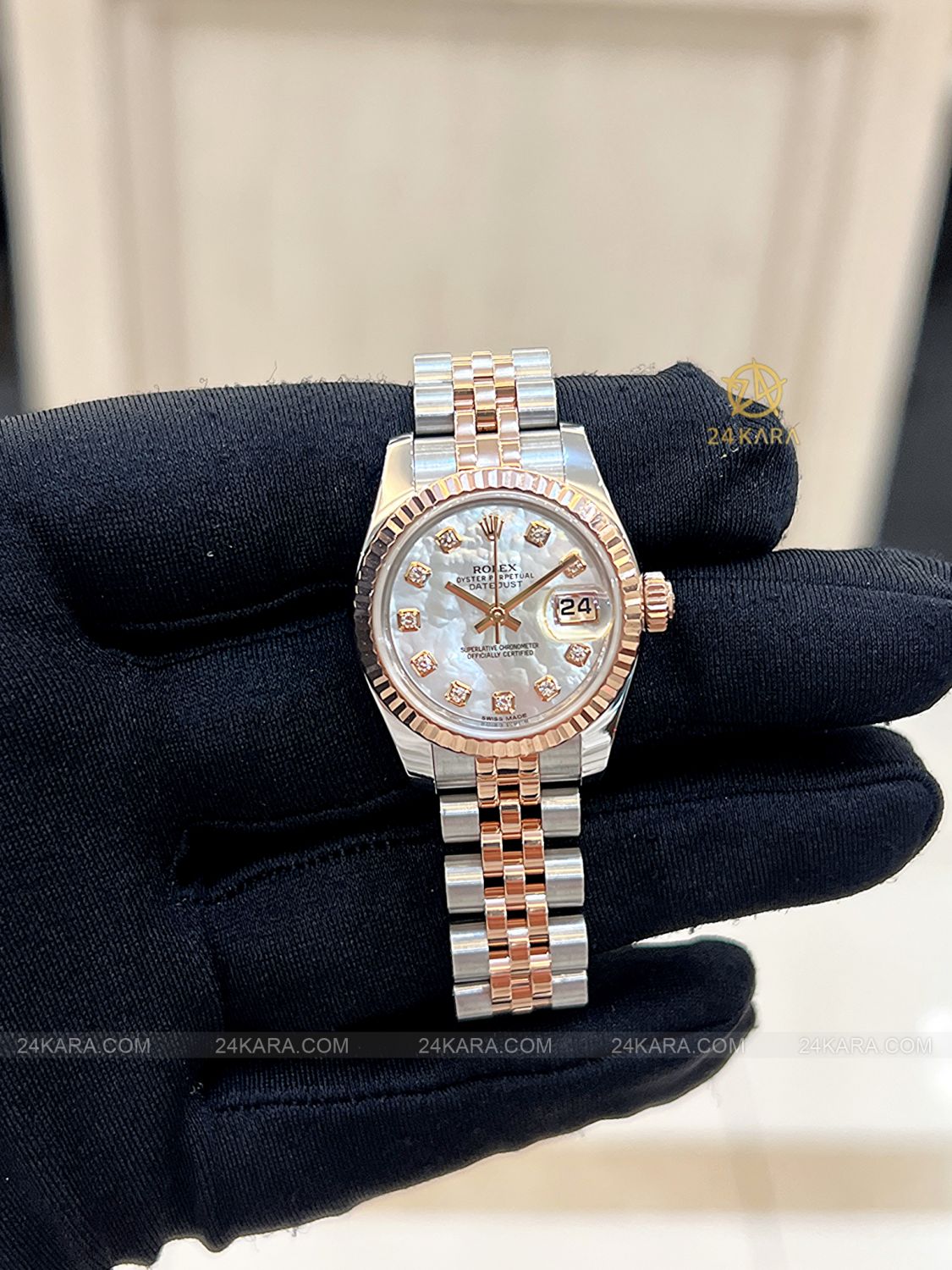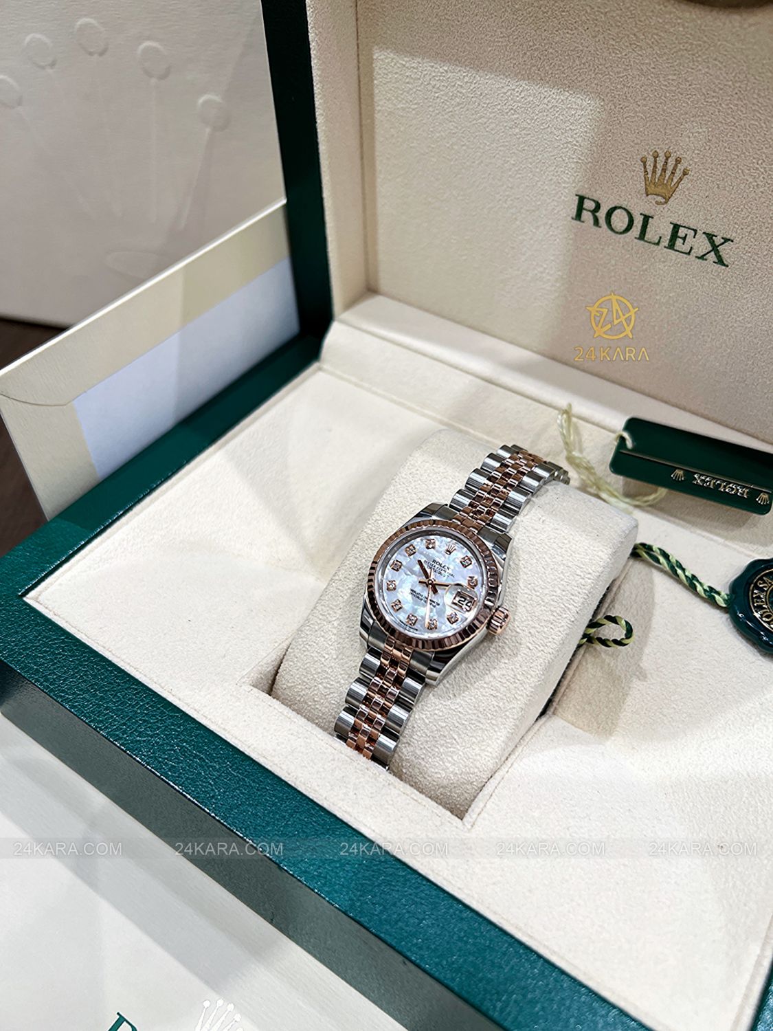 Đồng hồ Rolex Datejust 26 179171 Demi vàng hồng mặt khảm trai MOP cọc kim cương - Lướt