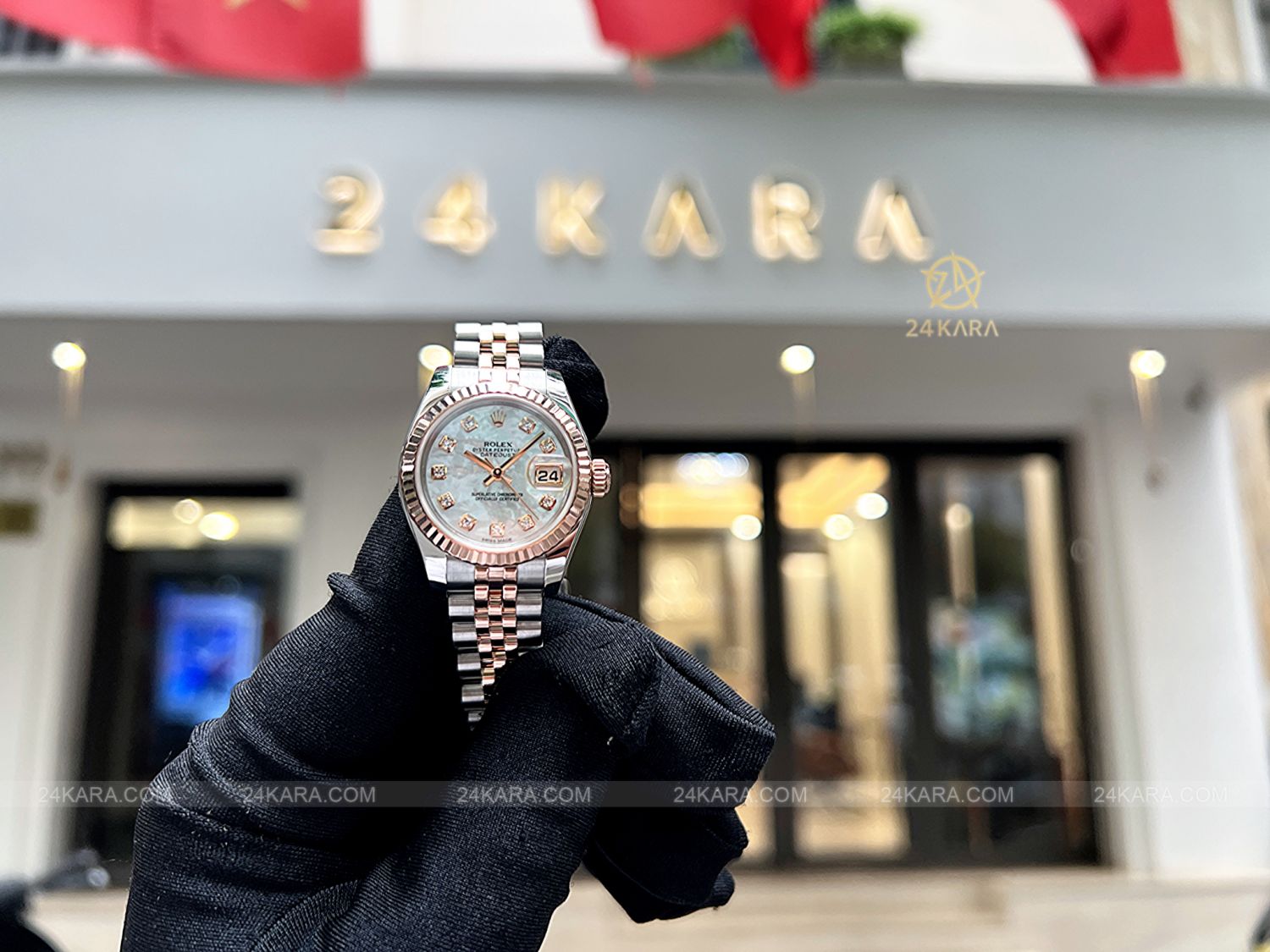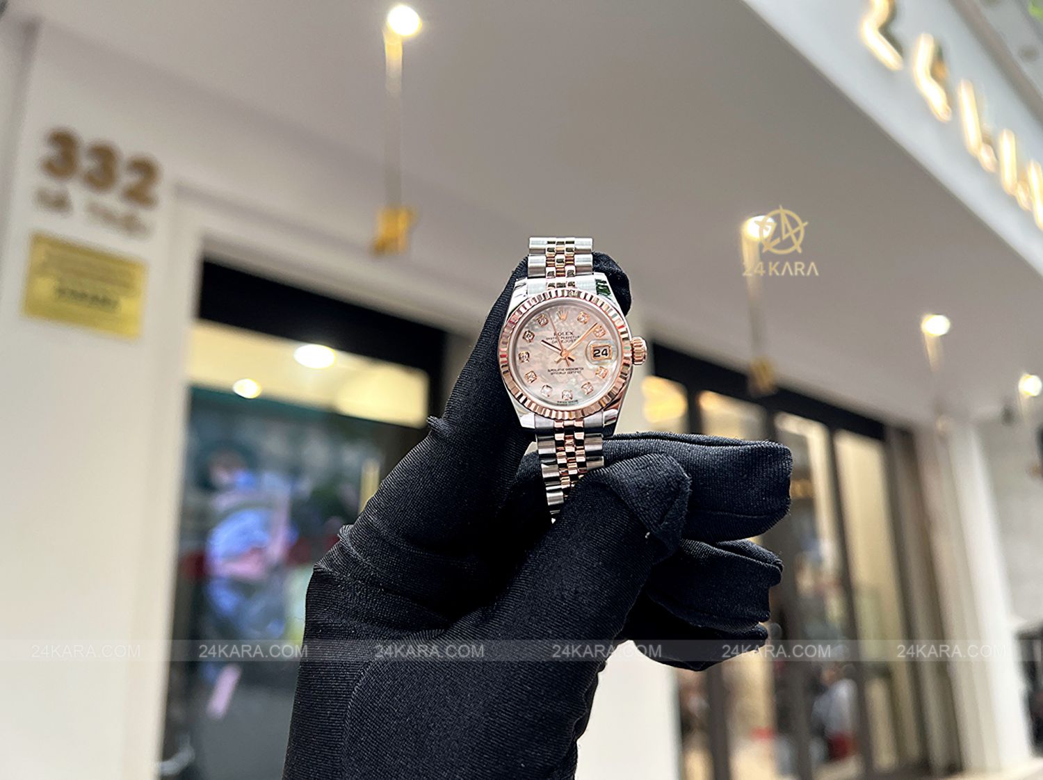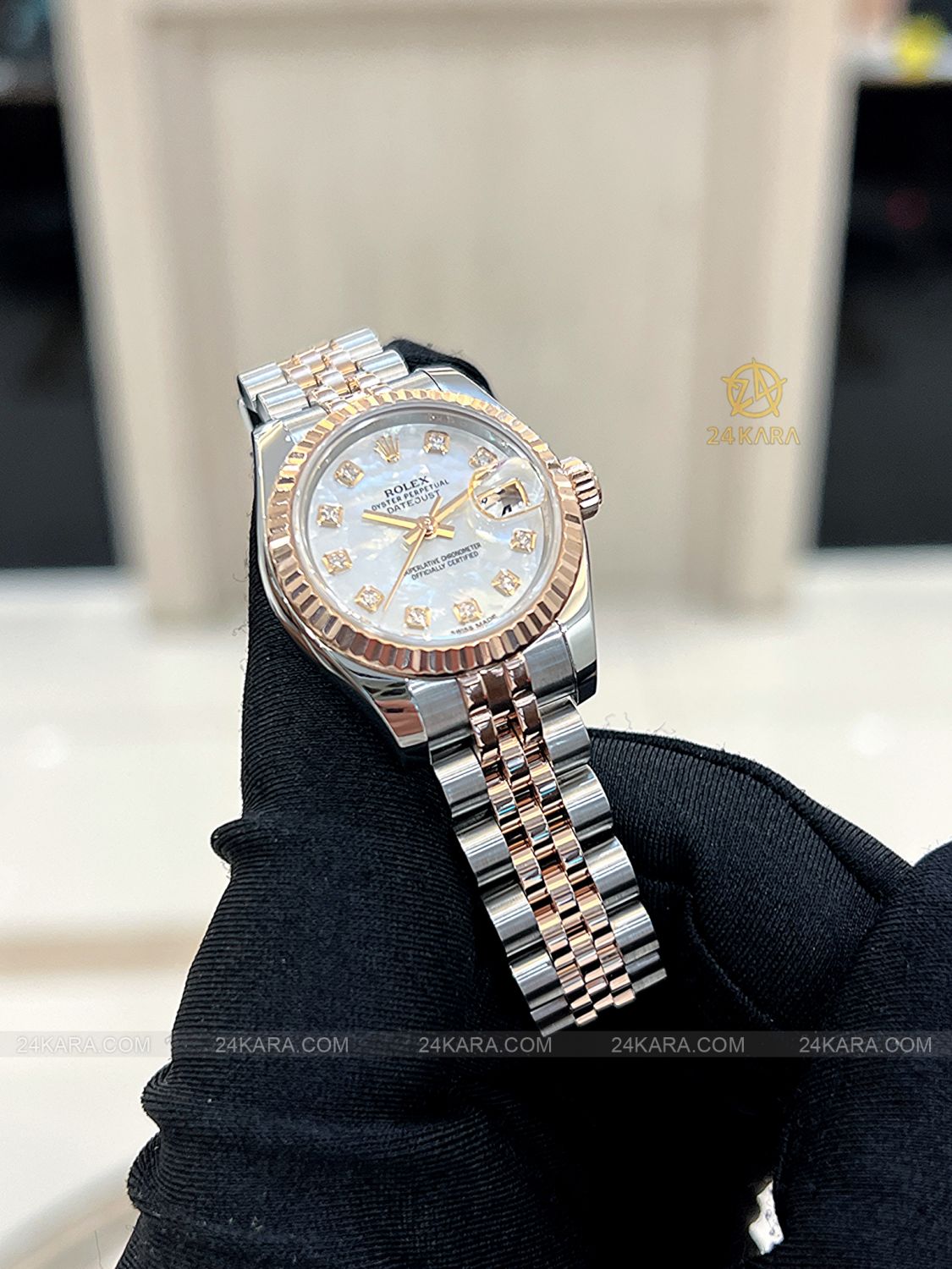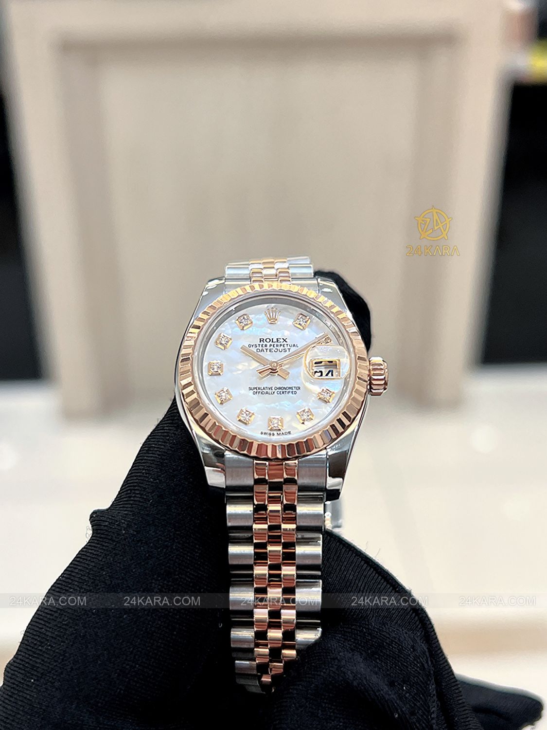 Đồng hồ Rolex Datejust 26 179171 Demi vàng hồng mặt khảm trai MOP cọc kim cương - Lướt